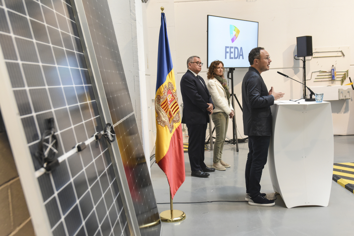 El cap de Govern, Xavier Espot, i la ministra de Medi Ambient, Agricultura i Sostenibilitat i presidenta de FEDA, Sílvia Calvó, han inaugurat aquest dilluns el parc solar de FEDA a Grau Roig en presència del director general, Albert Moles. L’estrena d’aquesta instal·lació fotovoltaica representa un pas més endavant en el camí de la transició energètica i en els objectius de producció amb fonts renovables que fixa la Llei d’impuls de la transició energètica i del canvi climàtic, alhora que redueix la dependència energètica del país. Amb la construcció d’aquest parc, es preveu produir, dins de les fronteres d’Andorra i a partir d’una font 100% renovable, uns 1.400 MWh a l’any, l’electricitat equivalent al consum de 250 llars.
