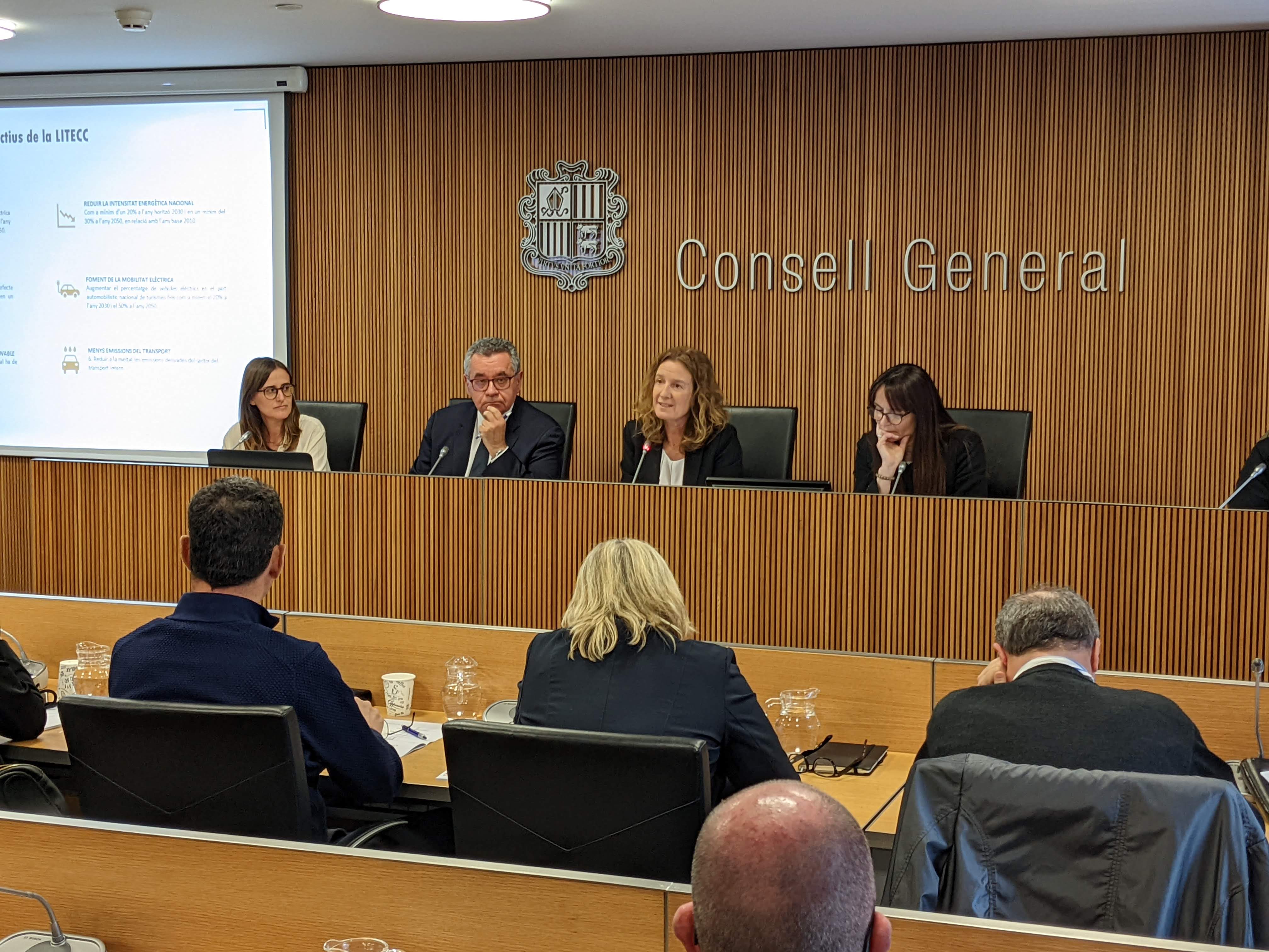 La ministra de Medi Ambient, Agricultura i Sostenibilitat, Sílvia Calvó, el director general de FEDA, Albert Moles, i la directora financera de FEDA, Marta Suñé, han explicat, aquest dimecres, la situació de FEDA en el context energètic global i les accions a curt termini per a la sostenibilitat del sistema energètic a la Comissió legislativa d’Economia. En la presentació han destacat com afecta la situació dels mercats energètics a l’economia del sector energètic i els mecanismes per fer-hi front. Alguns d’aquests són els contractes d’importació d’electricitat a preu fix garantit a llarg termini; les xarxes de calor, que contribueixen a limitar l’augment de l’electrificació de les calefaccions; i el projecte per a un parc eòlic al Pic del Maià, que estalviaria la compra de més de 40GWh d’electricitat i contribuiria també, per tant, a rebaixar el seu cost mitjà.