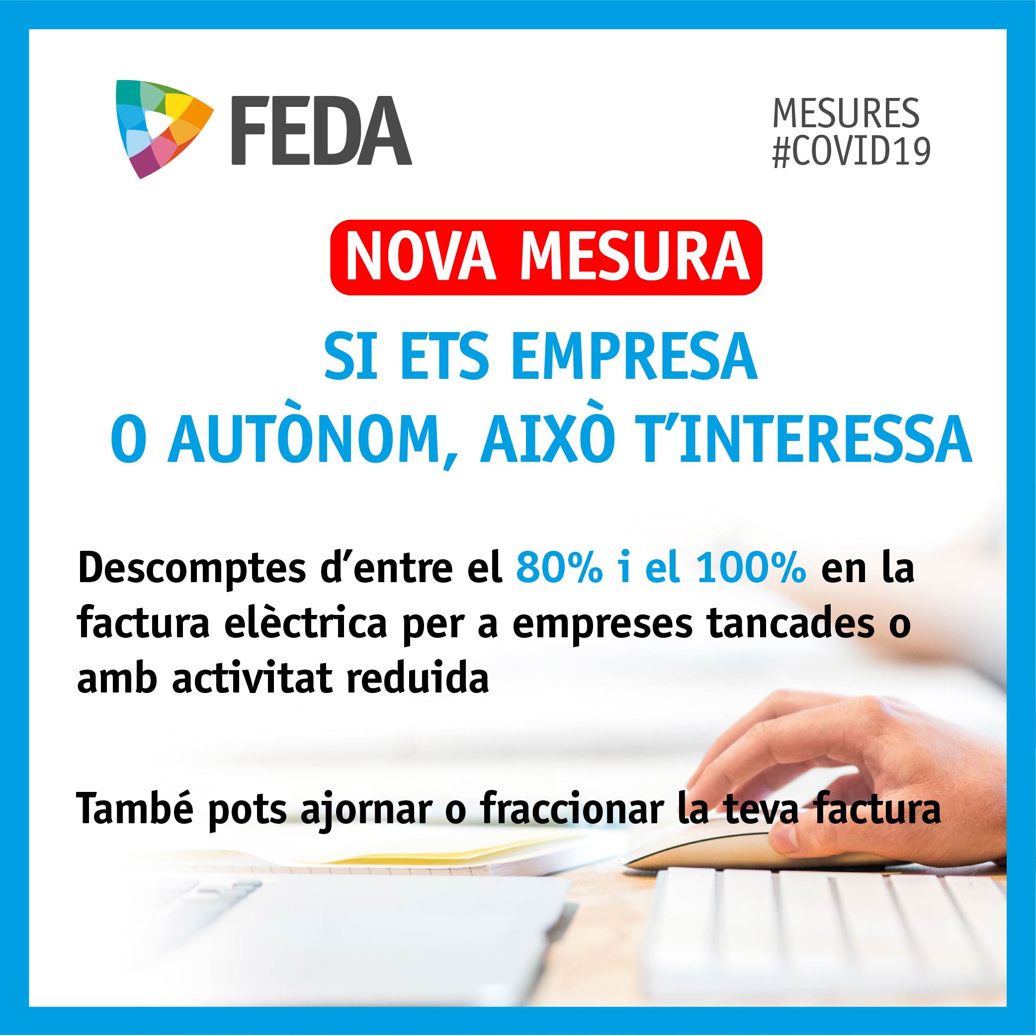A més, de cara als particulars, FEDA també va acordar no efectuar cap tall de subministrament elèctric mentre durin les mesures excepcionals pel coronavirus. Així, no es talla la llum encara que es detectin impagaments.