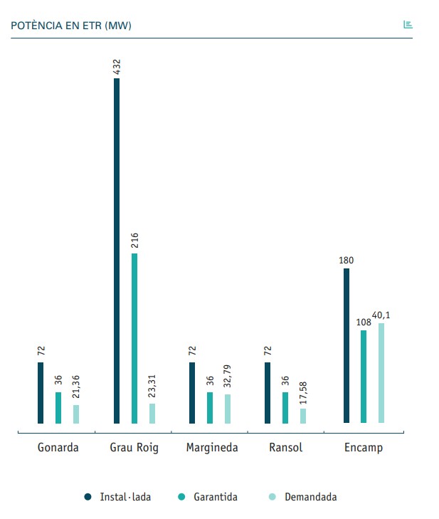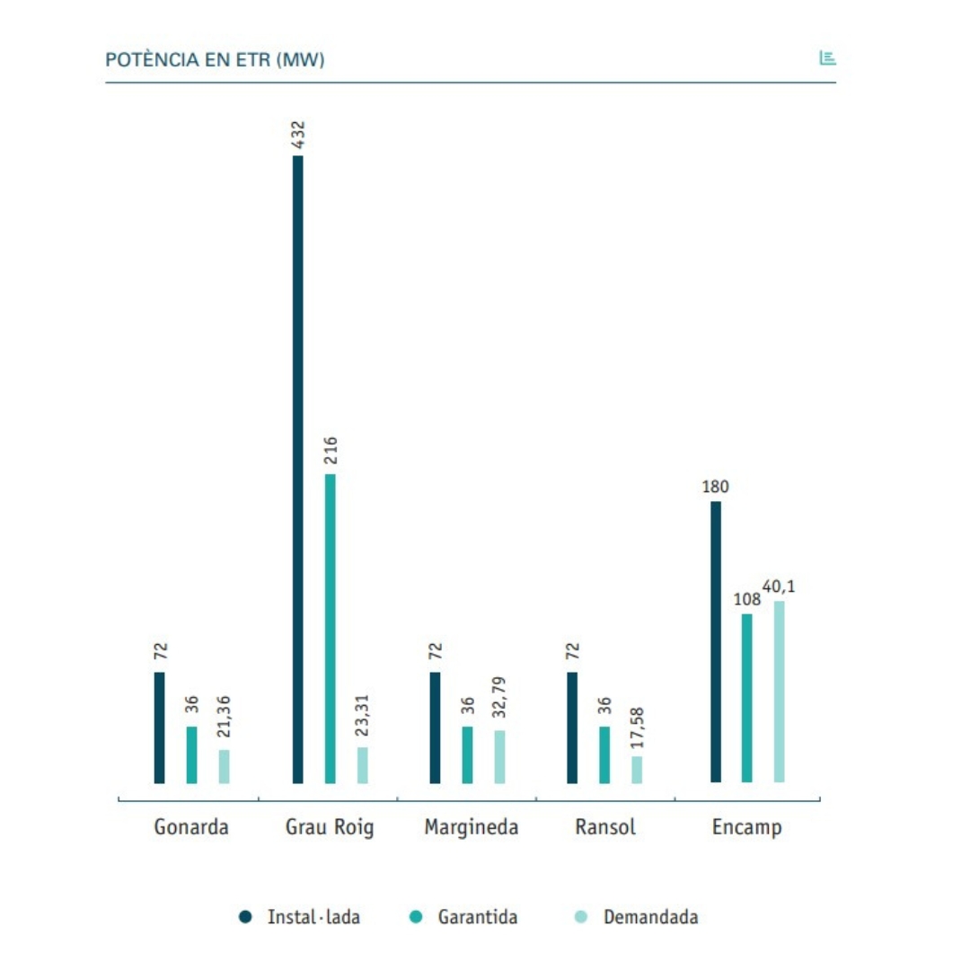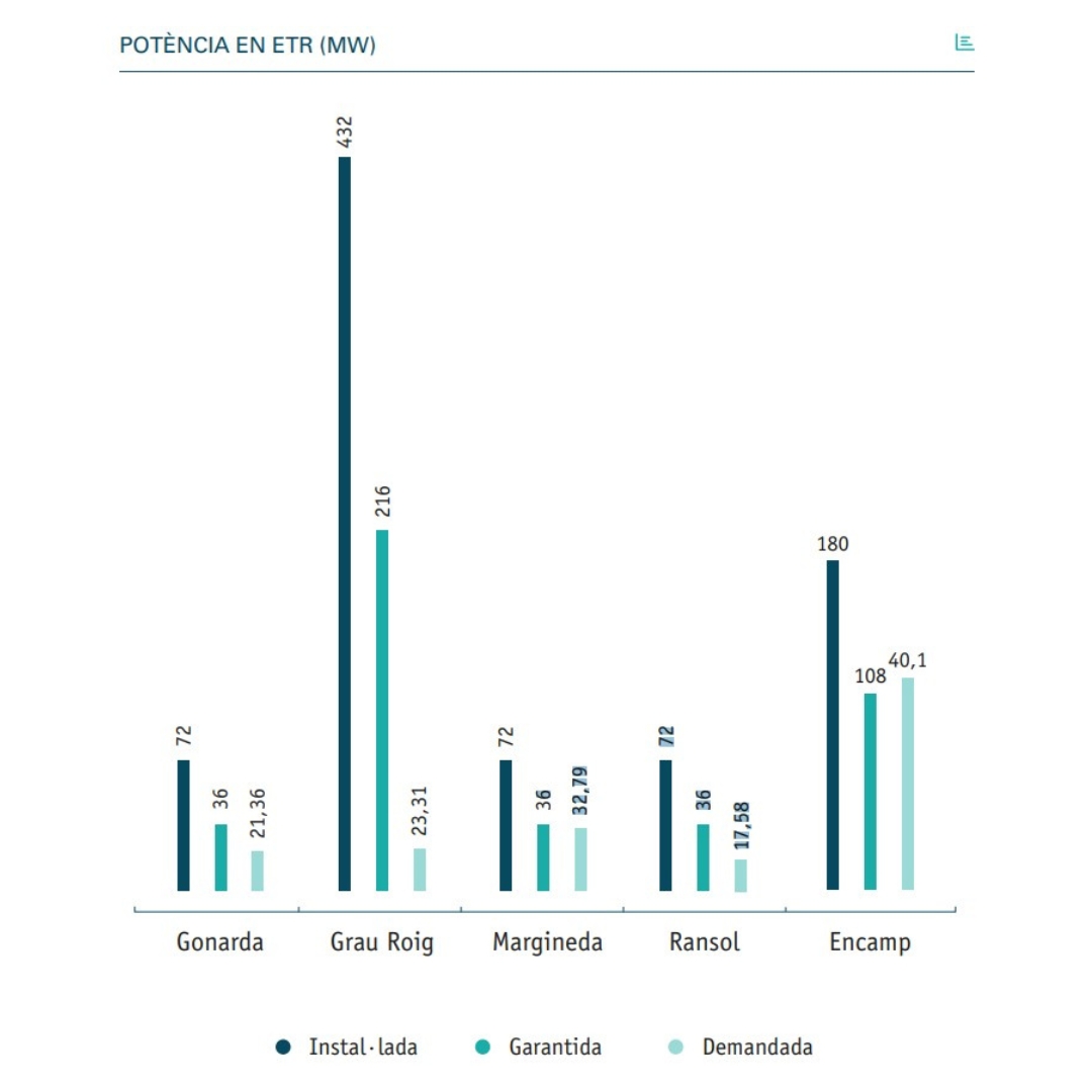 Potència a les ETR (MW)